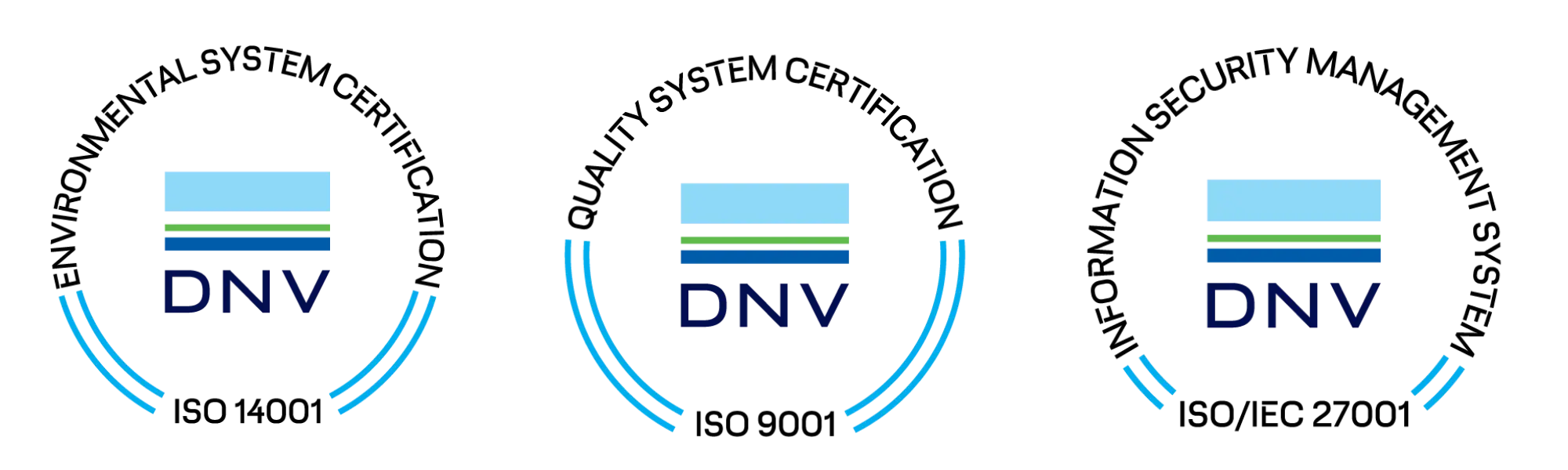 Nous sommes fiers d’être officiellement certifiés ISO dans trois domaines clés : ISO 9001 (management de la qualité), ISO 27001 (sécurité de l'information) et ISO 14001 (management environnemental).